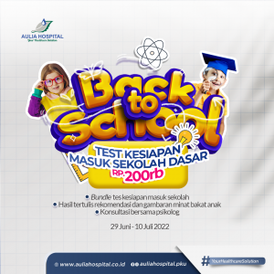 Libur telah tiba! Dalam rangka libur anak sekolah dengan ini Aulia Hospital mengeluarkan paket Test Kesiapan Masuk Sekolah Dasar. Test kesiapan masuk sekolah ini di tujukan pada anak TK yang belum cukup umur untuk masuk sekolah dasar (SD),tetapi sudah memiliki kemampuan akademis dasar. Bisanya dilakukan untuk anak umur 5-7 tahun.